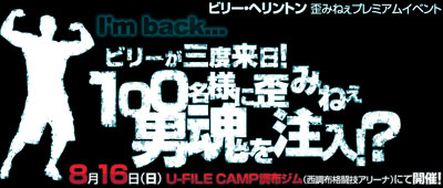 歪みねぇプレミアムイベント ビリーが三度来日!100名様にゆがみねぇ男魂を注入!