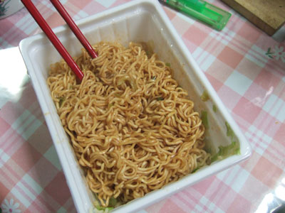 お湯を入れて三分、見た目は一見普通のカップやきそばなんですが